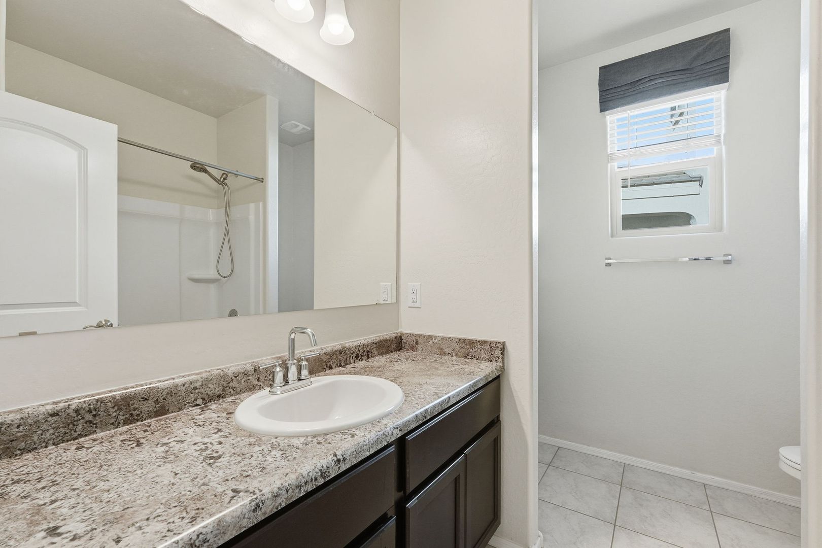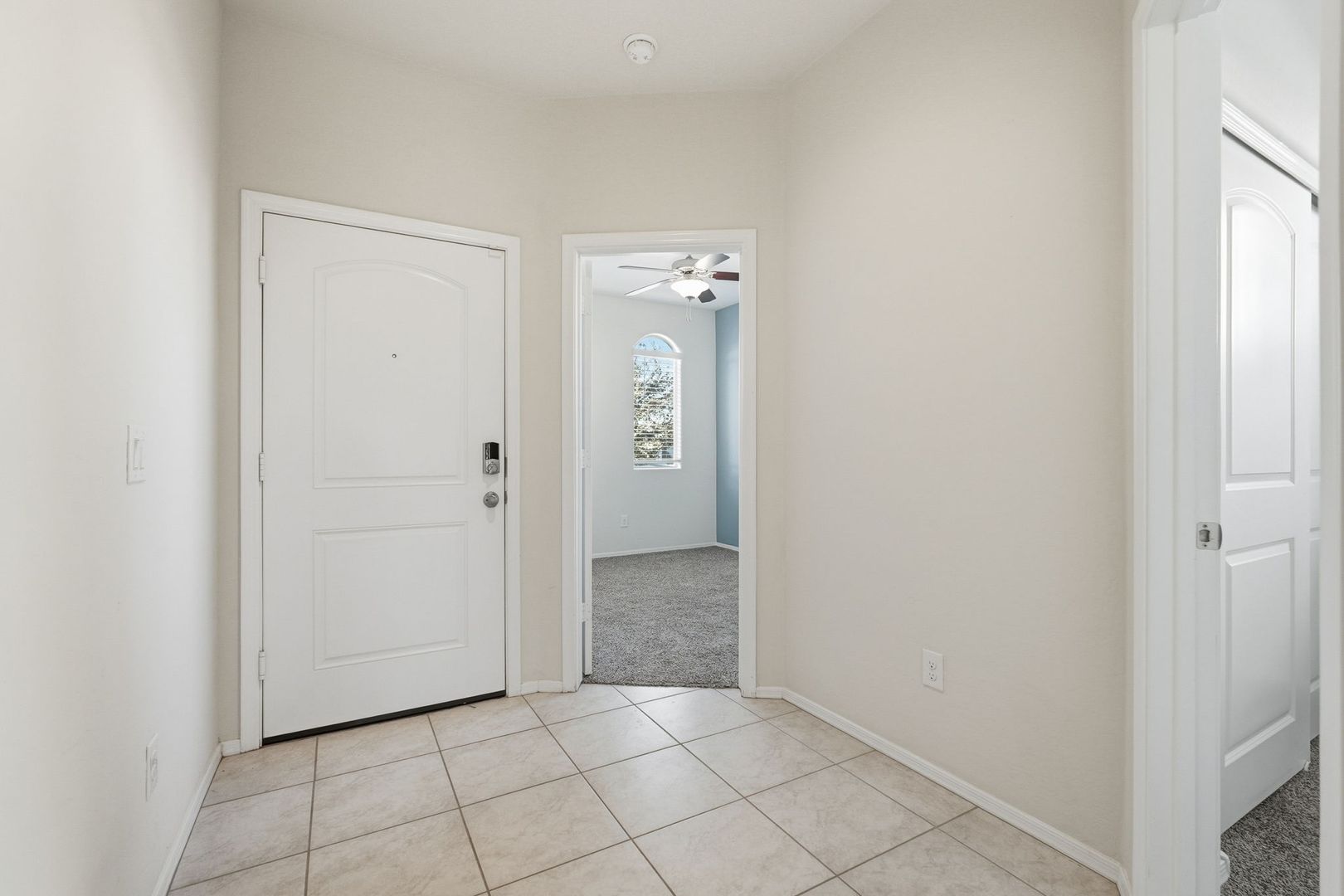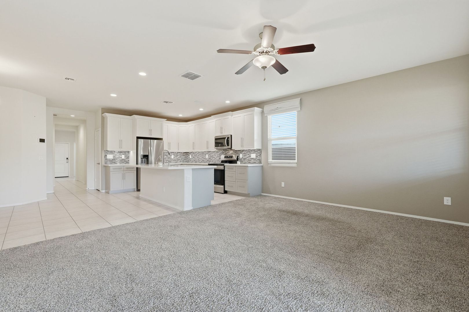 Truly special former model home with upgrades throughout and owned solar for long-term savings. This beautifully maintained home features a stunning kitchen and bathrooms, a tandem 3-car garage with epoxy flooring, and all appliances included, including washer, dryer, and refrigerator*The kitchen is a standout with quartz countertops, designer cabinetry with pull-out drawers, a touch less faucet, and a large island perfect for gathering. Enjoy a spacious laundry room with built-in cabinets and shelving, plus whole-house water softener and reverse osmosis system.*The primary suite includes a large walk-in closet and a lovely bath with dual sinks and a custom shower. Split floor plan offers comfort and privacy. Set on a peaceful cul-de-sac with easy-care yards. Community amenities