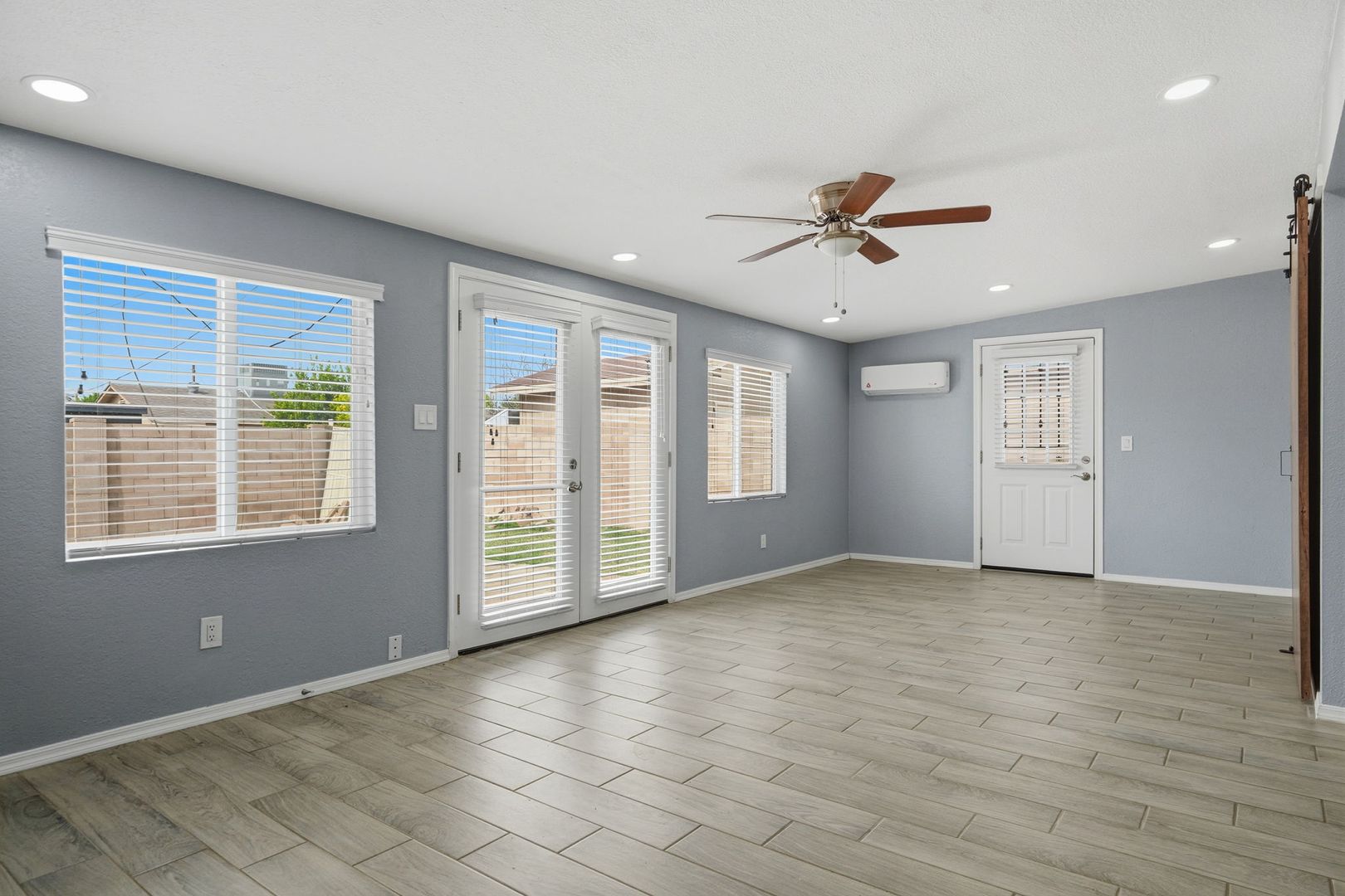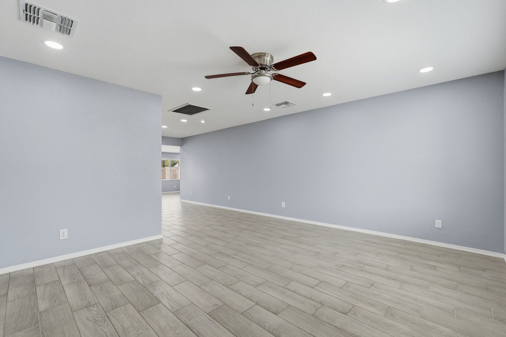 Wood plank tile throughout home* Recessed lighting and. upgraded ceiling fans* Raised panel doors* Blinds on all windows* Island kitchen with slab granite countertops* Single basin sink with upgraded faucet* Stainless steel appliances* Breakfast bar* Custom tiled bathrooms with upgraded fixtures* Grassy front and backyards with pavered patio* Attached 1-car garage* Block fence* Pets accepted with $50/mo per pet, plus $350 deposit per dog, $350 fee per cat, $195 admin fee